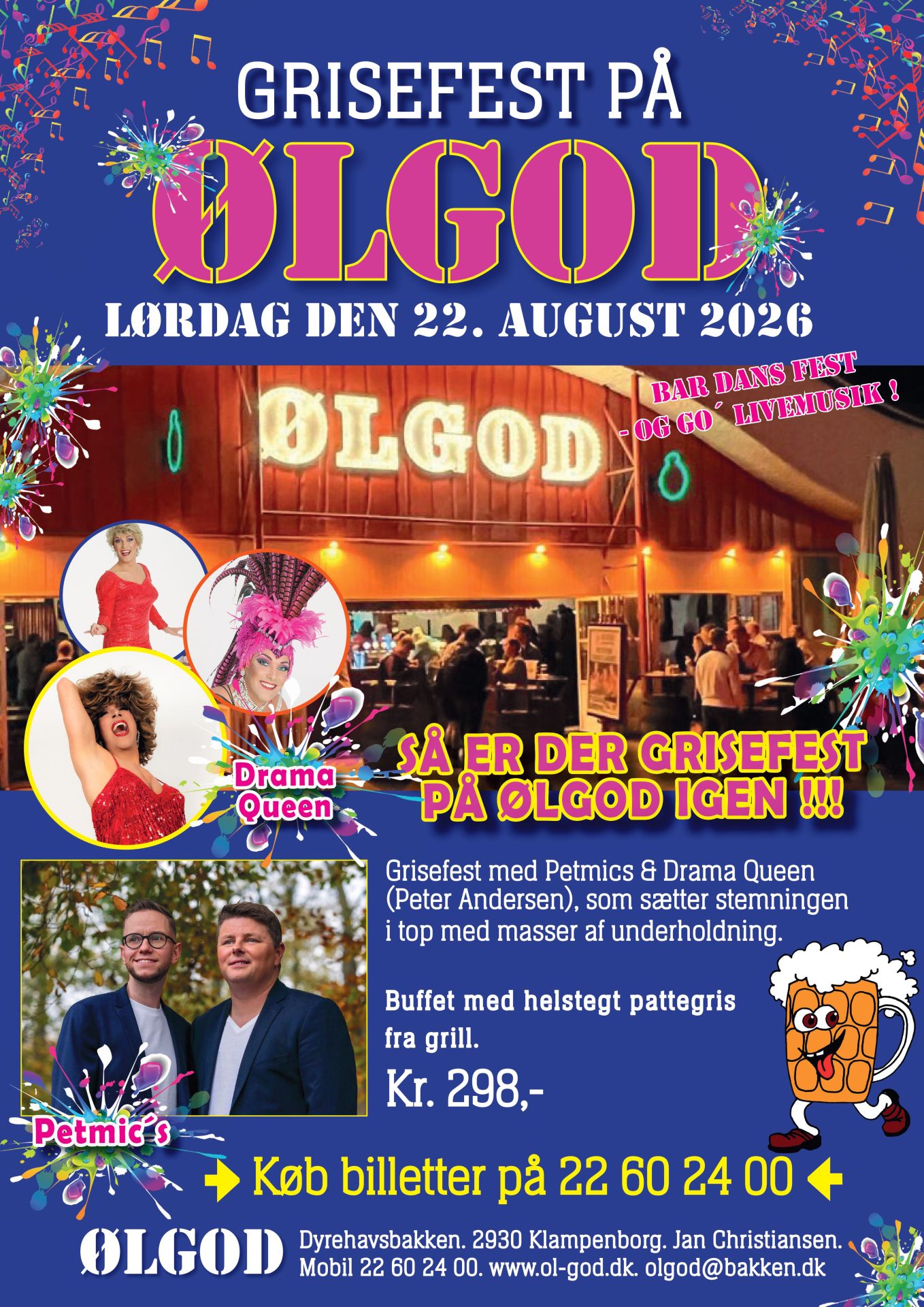 22. august 2026 @ 17:00 – 22:00 – Grisefest Ølgod vil gerne invitere dig til en uforglemmelig aften med masser af god musik og sjov! Lørdag den 22. August Drama Queen kommer med et spektakulært dragshow med sange og sketches. Drama Queen, alias Peter Andersen, blev for alvor landskendt, da han vandt Dansk Melodi Grand Prix i 2007 som drag med sangen Drama […]
